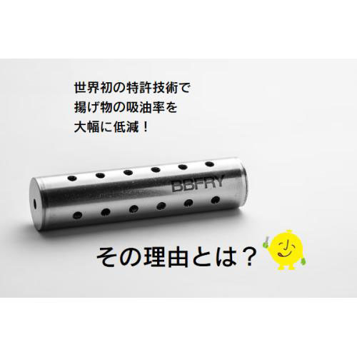 飲食店の揚げ物油を削減する技術「BBFRY」の普及 -世界初の特許技術で揚げ物の吸油率を大幅に低減- 電源不要、薬剤不要で揚げ物油を削減する技術「BBFRY」の導入を希望される飲食店様や飲食店様向けに「BBFRY」の導入を支援される企業様、「BBFRY」の普及に協力して頂ける皆様と共に取り組みの輪を広げて行く活動を推進しております。