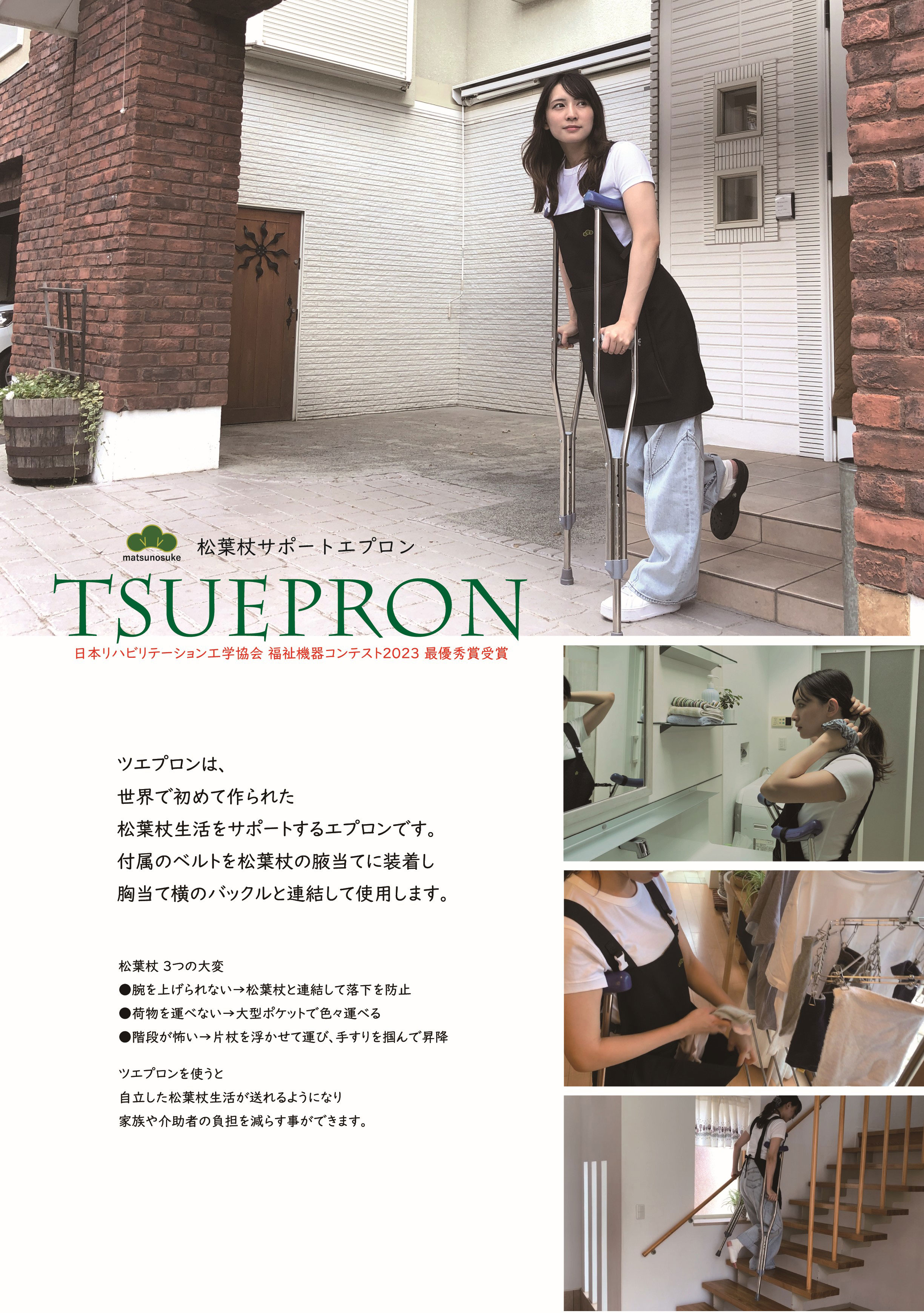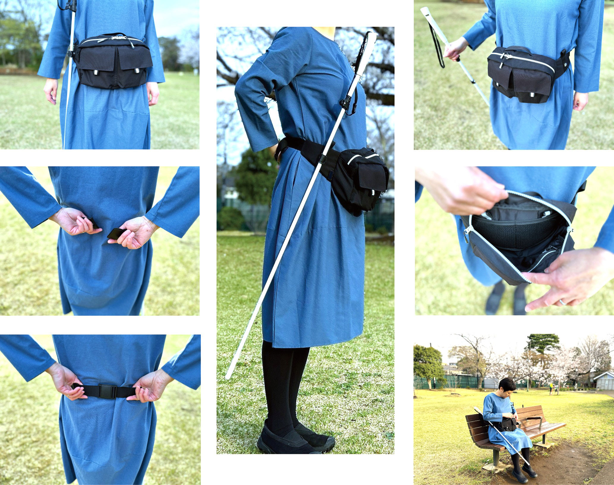 松葉杖用サポートエプロン「ツエプロン」と、新商品の「ツエストポーチ」を展示します。「ツエストポーチ」は、磁石の力で杖をウエストポーチに固定し、両手を自由に使える便利なアイテムです。メインユーザーは視覚障がい者ですが、白杖のほか、T字杖やポールウォーキング用の杖にも対応。アクティブな高齢者にもおすすめです。蓄光素材や反射素材、自動で吸着する磁石を採用した画期的なオリジナル商品です。ぜひお試し下さい!