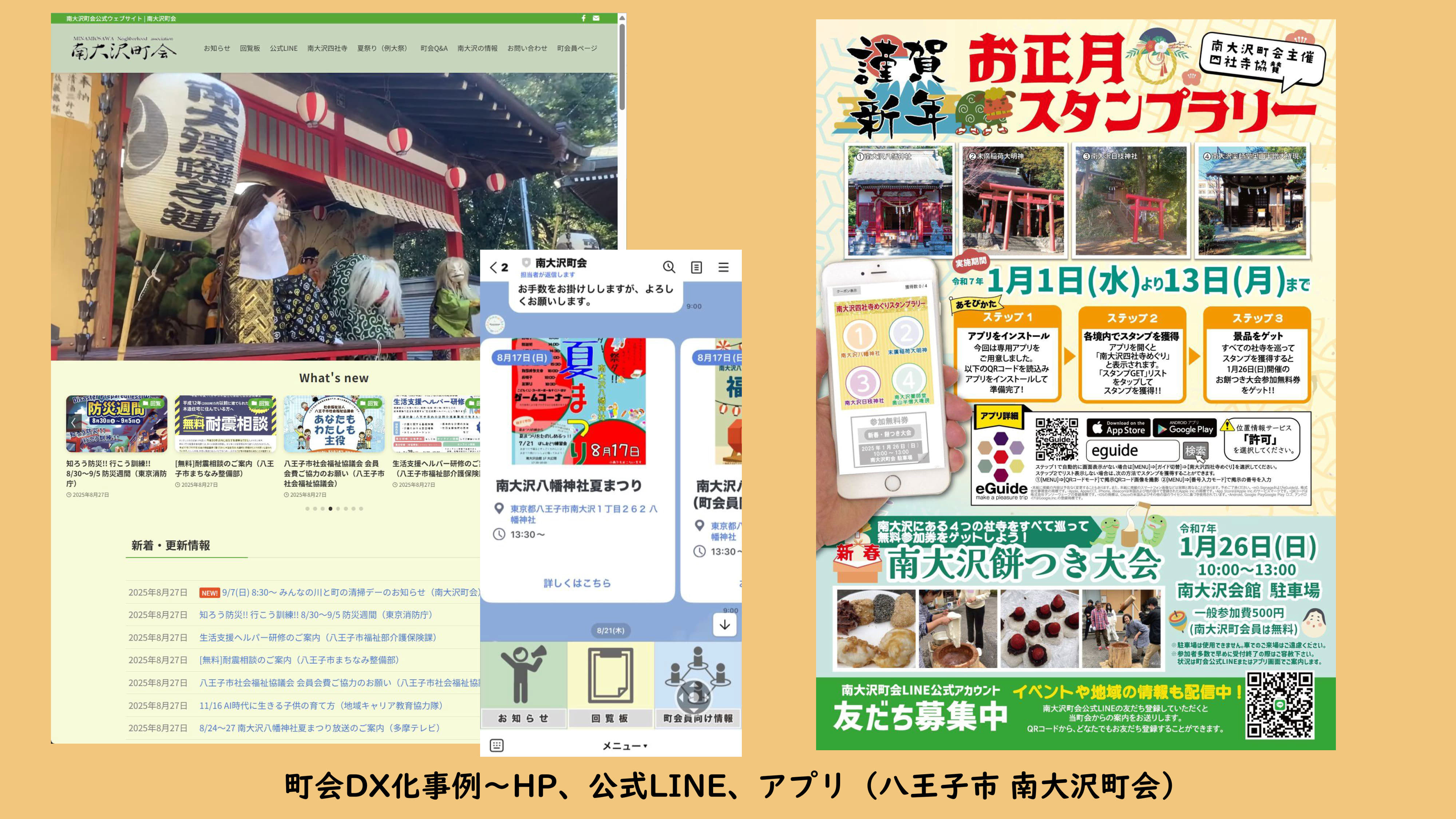 弊社は、既存のホームページやSNS、動画などのコンテンツを活用し、スマホアプリとして簡単に配信できるサービスを提供しています。さらに、インターネット技術を活用して短期間での多言語化や、アンケート・スタンプラリーなどの双方向サービスも実現可能です。商店街や町会・自治会のDX化をサポートし、「自分たちで運用できる」仕組みづくりをお手伝いします。