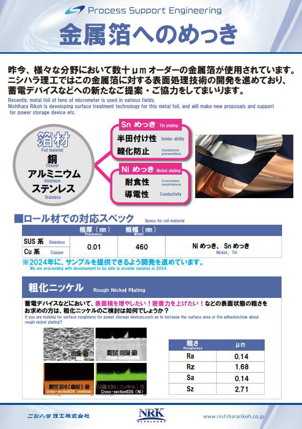 様々な表面処理を行っていますが、自動車関連部材、電池関連部材への技術として、アルミ材へのめっき技術、金属箔(厚み10μm)へのめっき技術を準備しています。機能性の向上などを目的に、これらの技術を活かして連携していきたい考えです。