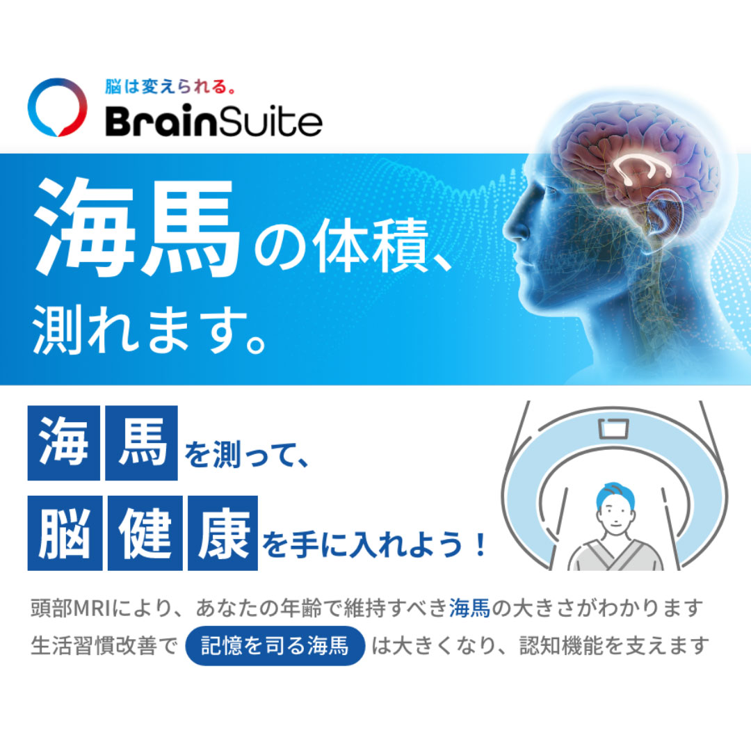 脳MRI画像をAIで解析し海馬の萎縮レベルを測定し、生活習慣改善を促す認知症リスク検査サービス「BrainSuite(ブレインスイート)」と、認知機能を改善する生活習慣を支援するヘルスケアアプリ「BrainUp(ブレインアップ)」。これらを単独、又は組み合わせた実効的な認知症予防サービスを提供する。