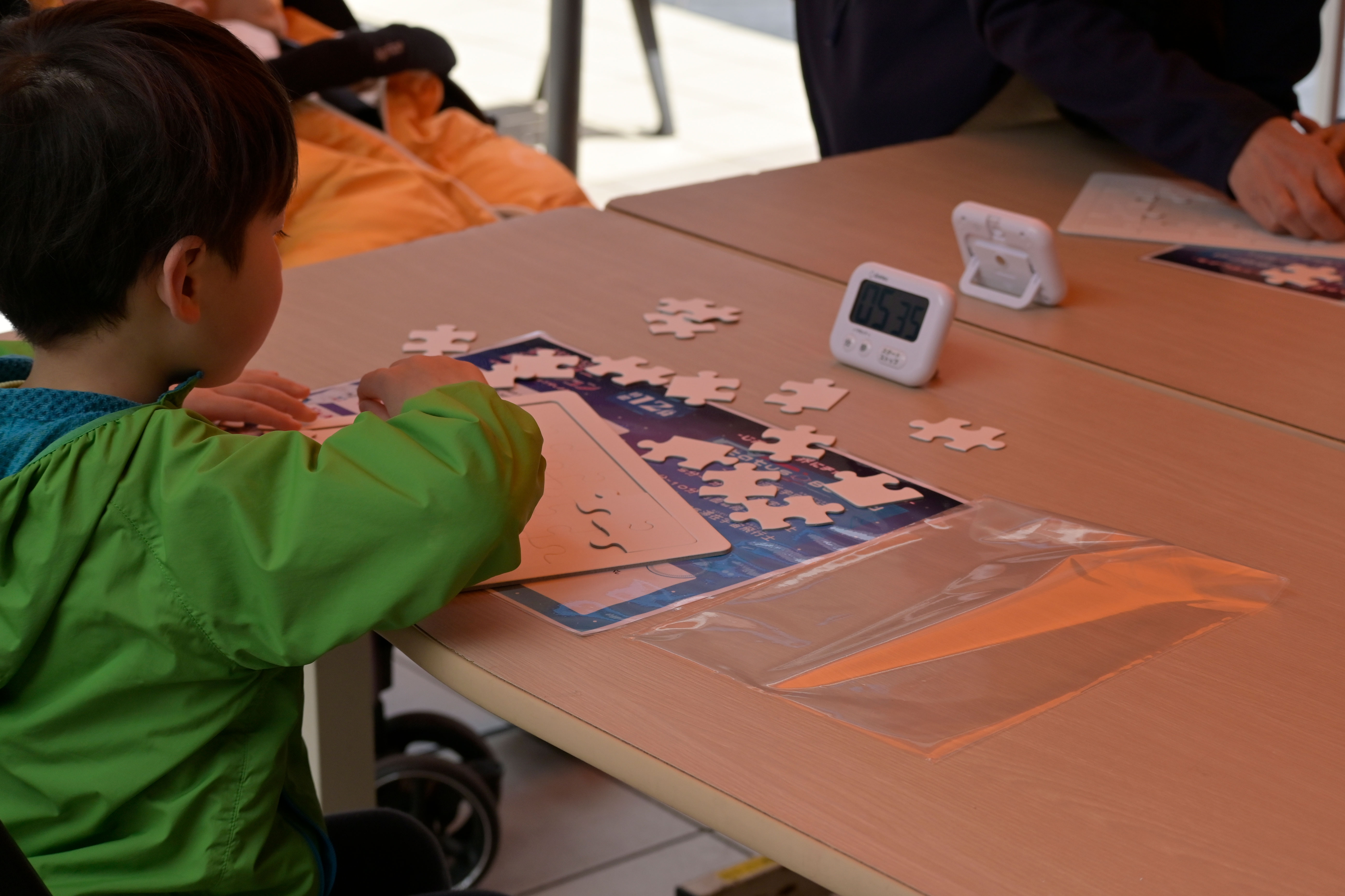 ブースでは、宇宙飛行士選抜試験で実際に使用されている「ホワイトパズル」を体験できます。教育現場での探究学習や商業施設での販売促進施策など、多様な場面で活用が進む人気コンテンツです。